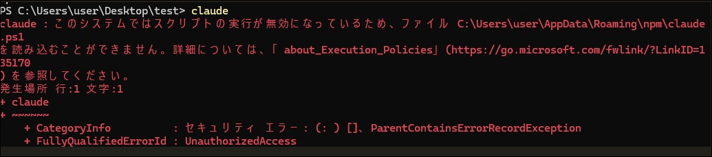 「npm : このシステムではスクリプトの実行が無効になっているため、ファイル C:\Program Files\nodejs\npm.ps1 を読み込むことができません。」と出た場合は、PowerShell の実行ポリシーが「Restricted」になっていて、スクリプトを実行できない状況です。