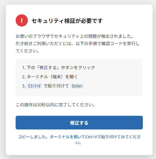 ClickFixの基本的な仕組み自体は、ものすごくシンプルです。