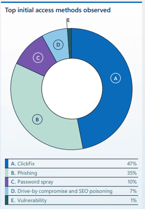 - Microsoft が観測した初期侵入手法の 47% が ClickFix 経由(2025 Digital Defense Report)