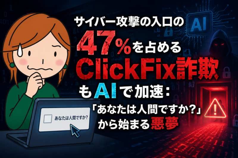 詐欺の名前は ClickFix(クリックフィックス)。サイバー攻撃の入口の47%を占めます。