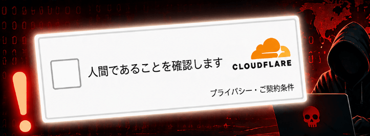 - 偽の「人間ですか?」または「セキュリティ警告」画面が表示される