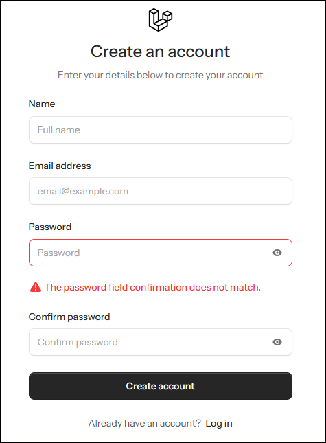 <form method="POST" action="{{ route('register.store') }}" class="flex flex-col gap-6"> @csrf <!-- Name --> <flux:input name="name" :label="__('Name')" type="text" required autofocus autocomplete="name" :placeholder="__('Full name')" /> |