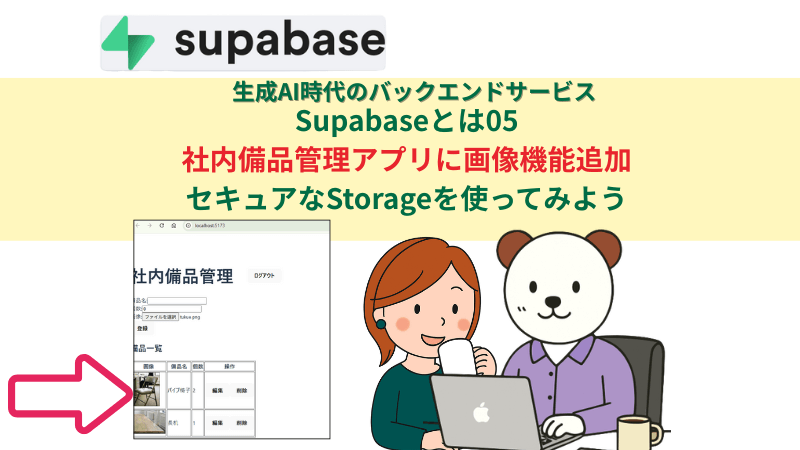 今回はこれまで作成してきたWebアプリに、画像をアップロードする機能をつけます。Supabaseのstorage機能を使っていきます。